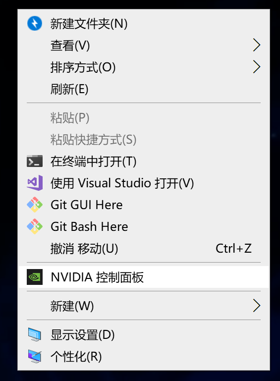 在装好驱动后,在桌面上右键点击,打开nVidia控制面板