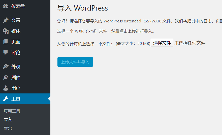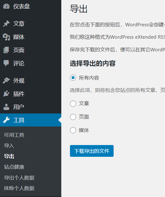 从旧的WordPress上导出文章、页面等数据