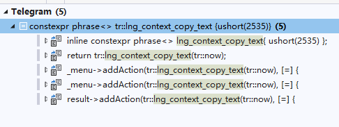 复制消息的菜单文本是 Copy Text 。对应的翻译文本是 "lng_context_copy_text" = "Copy Text" 。借助VS查找使用位置的功能,出现 lng_context_copy_text 的代码包括